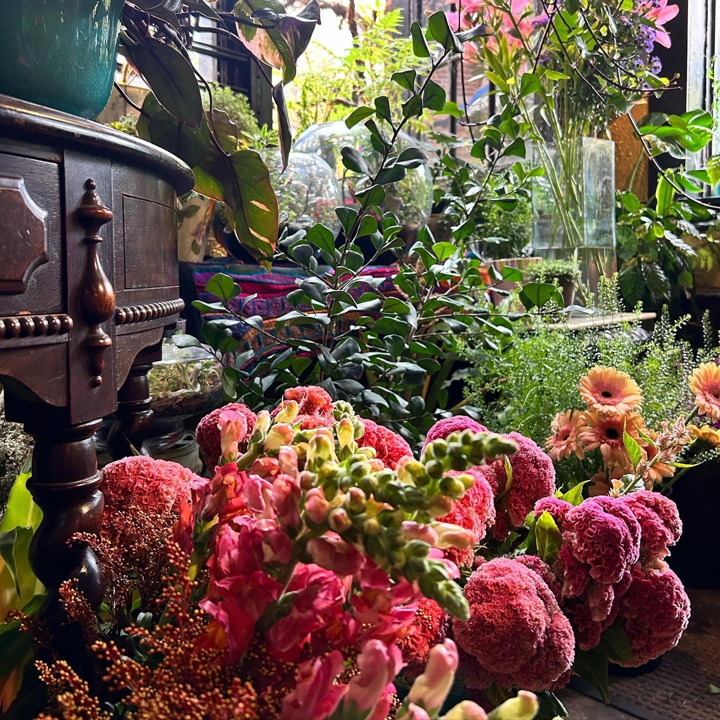 View fullsize Happy Friday! Bring some color and life into your life on this snowy day?  Plants 🌱  Flowers 🌸 Dried Bouquets 💐 Art 🖼 Antique Vases ⚱️